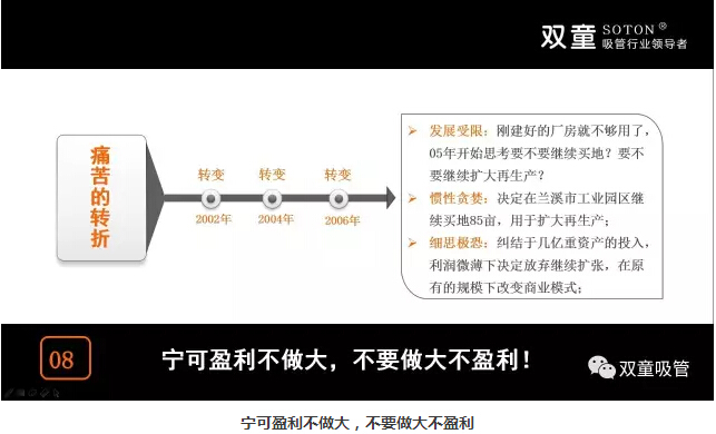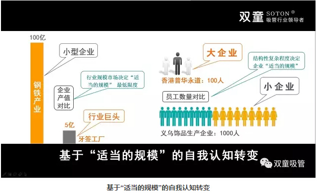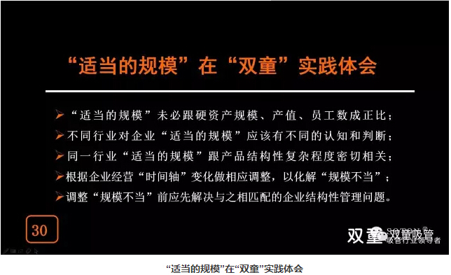 “適當的規模”未必跟硬資產(chǎn)規模、產(chǎn)值、員工數成正比,不同行業(yè)對企業(yè)“適當的規模”應該有不同的認知和判斷,根據企業(yè)經(jīng)營(yíng)“時(shí)間軸”變化做相應調整來(lái)改變“雙童”未來(lái)在行業(yè)當中的地位!