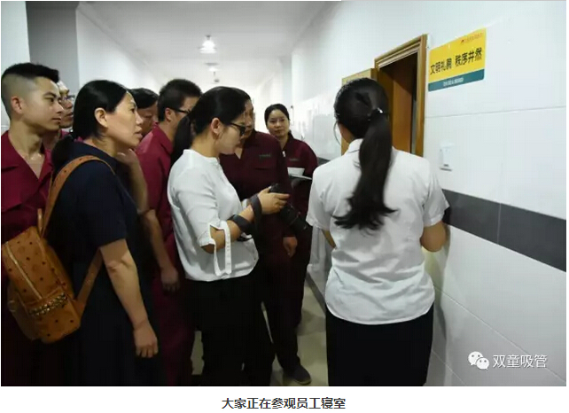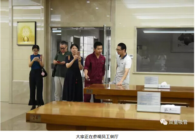接下來(lái),大家來(lái)到了員工餐廳,餐桌上的用餐提示語(yǔ)、墻上的相框、餐桌上的編號銅牌……隨處可見(jiàn)的優(yōu)質(zhì)細節都讓大家稱(chēng)贊不已!除此之外,員工的餐飲都是三菜一湯的標配,員工們使用后的所有碗筷都由食堂阿姨進(jìn)行清洗和消毒。大家在看到如此精細的就餐環(huán)境和硬件后紛紛表示很羨慕呢!