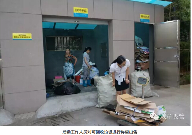 接下來(lái),就是對收集好的各類(lèi)垃圾進(jìn)行分類(lèi)分揀處理工作。在我們的垃圾分揀房,每天都有兩位阿姨負責垃圾的分揀工作。把可回收利用的紙板、塑料瓶等放到“可回收垃圾房”后一起出售,把不可回收的生活垃圾放到“不可回收垃圾房”一起運出。