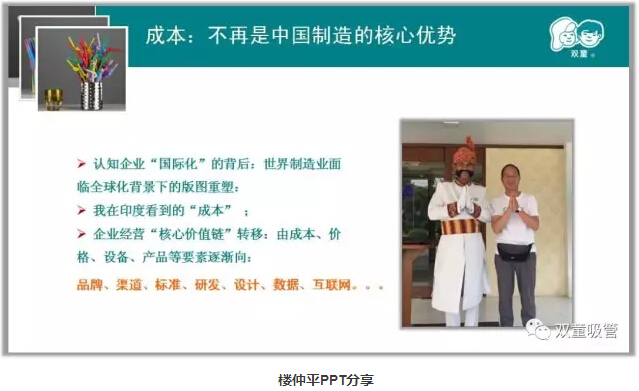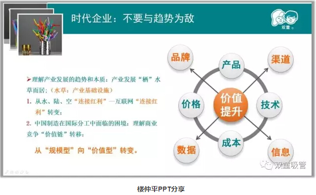 首先,“雙童”樓仲平分享了在全球化的背景下,成本不再是制造業(yè)的核心優(yōu)勢。企業(yè)必須面對時(shí)代的不斷變化,產(chǎn)業(yè)發(fā)展“棲”水草而居,中國制造商業(yè)競爭“價(jià)值鏈”轉移逐漸從“規模型”向“價(jià)值型”轉變。