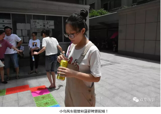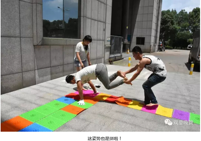 第二環(huán)節:用雙手走路,考驗大家協(xié)調能力的時(shí)候到了!各位同學(xué)配合的默契十足嘛!一個(gè)個(gè)爭分奪秒的在指壓板上健步如飛的!看來(lái),吸管妞小瞧大家了。