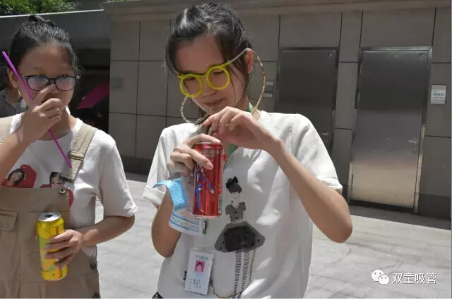 (吸管妞小科普:該員工用的吸管是“雙童”的眼鏡吸管哦,清涼的夏日喝一杯西瓜汁你的“鏡框”就是紅色的,還有鏡框的效果哦,是不是很神奇呢?)
