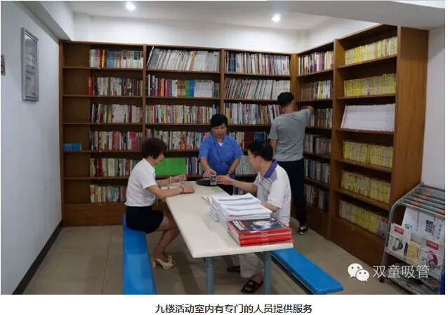 來(lái)到九樓的員工活動(dòng)室,電視、電腦、乒乓球桌等設施一應俱全。下班后,員工們可以打乒乓球,唱卡拉OK,看電影;還可以在圖書(shū)室看看書(shū)。我們還設立了服務(wù)臺,有一名服務(wù)人員為員工們進(jìn)行服務(wù)。