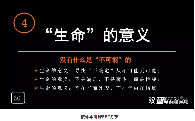 “生命”的意義:“雙童”樓仲平通過(guò)自己的經(jīng)歷告訴大家沒(méi)有什么是不可能的:沒(méi)人設計節能降耗,就自己學(xué)設計,在樊登讀書(shū)會(huì )金華分會(huì )周年慶促銷(xiāo)活動(dòng)時(shí),樓仲平用六個(gè)小時(shí)爭取到58個(gè)會(huì )員。我們要選擇自己想要的方式選擇自己的人生,千萬(wàn)不要抱怨,抱怨是最大的瓶頸!生命的意義在于尋找“不確定”,從不可能到可能,在于不斷地挑戰和內在修煉!