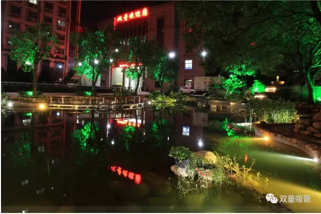 當夜幕降臨,走在鑲嵌在地面上的鵝卵石小徑上,掩映在綠樹(shù)成蔭下的路燈也是美麗極了!夜色初上,朦朦朧朧的淡淡燈光,與月色交相輝映,夜幕下的“雙童”也別有一番風(fēng)味!