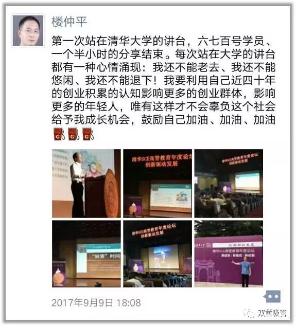 通過(guò)持續不斷地積累,“雙童”樓仲平也從企業(yè)管理工作者逐漸轉變?yōu)閯?chuàng )業(yè)研究和管理教育工作者,在時(shí)代快速改變下不斷更新提升自己的認知,逐漸完成了第二次人生迭代,從八零后迭代為九零后!