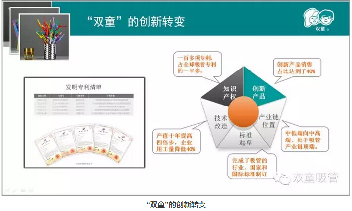 這些年來(lái),樓仲平也一直致力于推動(dòng)“雙童”的創(chuàng )新工作,并研發(fā)了愛(ài)心吸管、風(fēng)車(chē)吸管、哈哈吸管、音樂(lè )吸管等100多種創(chuàng )新產(chǎn)品。目前為止,擁有了100多項專(zhuān)利,掌握了全球吸管行業(yè)近2/3的專(zhuān)利!通過(guò)標準、知識產(chǎn)權、科技的創(chuàng )新,“雙童”也逐步從全球最大”成長(cháng)為“全球最強”!