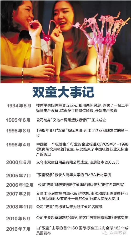 今年7月,瑞士日內瓦ISO國際標準化組織正式向全球162個(gè)成員國發(fā)布了《聚丙烯飲用吸管規范》ISO國際標準,這一標準正是由“雙童”主導制定的,“雙童”成為名副其實(shí)的國際行業(yè)游戲規則的制訂者。