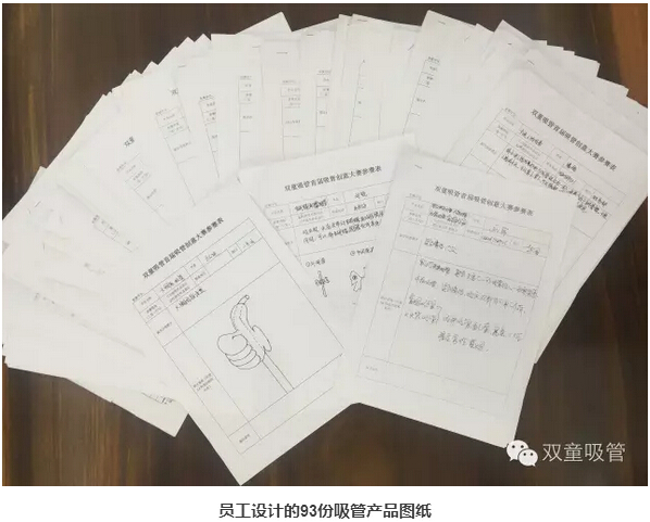“僅這一個(gè)小小的水流止回閥,我們就擁有4項自主知識產(chǎn)權,有效解決了液體回流問(wèn)題,還避免交叉感染?!睒侵倨礁嬖V記者,因為吸管生產(chǎn)是很偏很窄的行業(yè),要想產(chǎn)品有創(chuàng )新、有市場(chǎng),“雙童”只能靠自己研發(fā),除了產(chǎn)品的外觀(guān)、功能外,就連生產(chǎn)設備也要自己研制,他的很多創(chuàng )新都是“困而知之”的產(chǎn)物。為了鼓勵員工參與創(chuàng )新,樓仲平每年都會(huì )舉辦產(chǎn)品創(chuàng )新大賽,讓員工們的創(chuàng )新潛力得到最大程度的激發(fā)?,F在熱銷(xiāo)的不少新款吸管產(chǎn)品,就來(lái)自創(chuàng )新大賽的獲獎作品。2015年,“雙童”的新產(chǎn)品占比超過(guò)56%。
