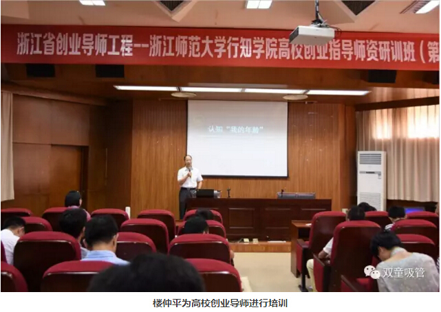 從去年5月份以來(lái),“雙童”樓仲平多次受邀參加浙江省創(chuàng )業(yè)導師培訓工程,連續為全省大學(xué)創(chuàng )業(yè)導師們進(jìn)行創(chuàng )新創(chuàng )業(yè)等主題的培訓分享,去年年底還被評為了“省級創(chuàng )新創(chuàng )業(yè)導師”!