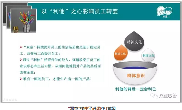 在“雙童”,沒(méi)有賭博、酗酒等不良現象,管理層與員工之間充滿(mǎn)了關(guān)愛(ài)和尊重,處處展現出企業(yè)和員工和諧的精神風(fēng)貌!正是因為員工的幸福得到了保障,“雙童”的團隊才有著(zhù)長(cháng)期穩定的向心力和凝聚力,“雙童”也被媒體稱(chēng)為中國中小企業(yè)員工幸福指數最高的企業(yè)之一!看到這里,親愛(ài)的粉絲們,你們說(shuō)在“雙童”是不是很“賺”呢?