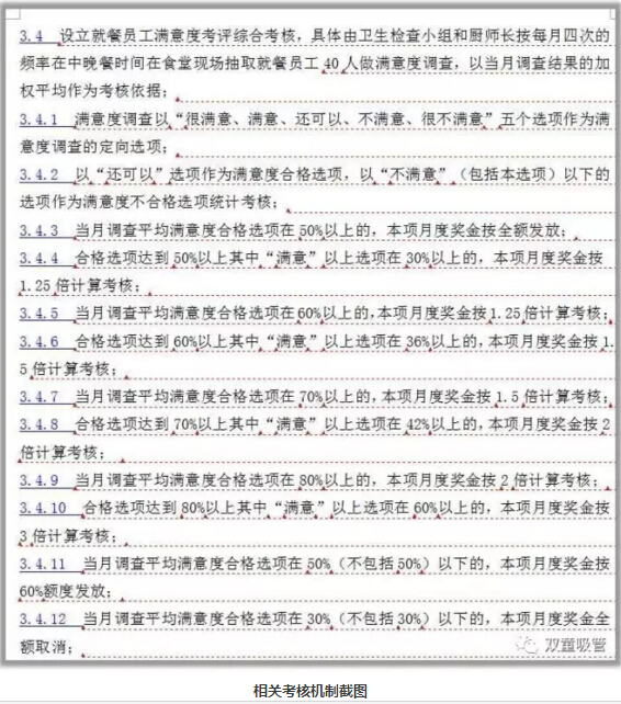 除此之外,我們設立了就餐員工滿(mǎn)意度綜合考核,按每月四次在食堂現場(chǎng)抽取就餐員工進(jìn)行滿(mǎn)意度調查,廚師的考核獎金也直接和員工的滿(mǎn)意度掛鉤,盡力滿(mǎn)足員工們的就餐需求,足以見(jiàn)得“雙童”對員工餐飲的重視!