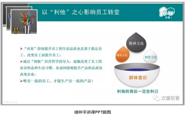 優(yōu)質(zhì)硬件是保障優(yōu)質(zhì)餐飲的前提,所以,“雙童”五星級員工餐廳內的設施都配備了最好的硬件,以保障餐飲的品質(zhì)!就拿網(wǎng)友熱議的員工餐廳這張桌子來(lái)說(shuō),一張就要15000元,餐廳內光光餐桌的總投資就達到70多萬(wàn)。每一張桌子重達四五百斤,是樓仲平特地去東陽(yáng)市中國紅木家具城挑選由“木中之王”的柚木定制而成,特點(diǎn)是紋理線(xiàn)條優(yōu)美,所以每張餐桌的顏色都很漂亮,十分細膩!
