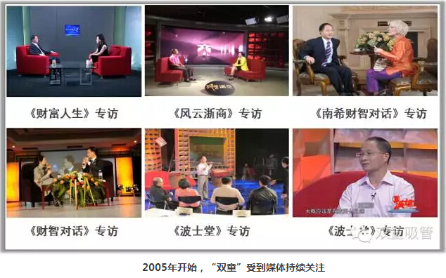2006年開(kāi)始,中央電視臺《新聞聯(lián)播》、《焦點(diǎn)訪(fǎng)談》、《財經(jīng)頻道》、《波士堂》等十幾家國內權威媒體也關(guān)注到“雙童”,大量報道“雙童”節能降耗、員工關(guān)懷等經(jīng)營(yíng)理念。媒體的大量報道引發(fā)了社會(huì )各界對“雙童”的關(guān)注,一時(shí)間全國各地政府企業(yè)組團來(lái)“雙童”參觀(guān),光光2007年,“雙童”就接待了共3500位參觀(guān)者,在無(wú)形當中為“雙童”品牌傳播創(chuàng )造了很好的傳播手段!