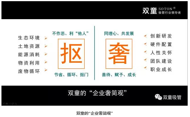 創(chuàng )業(yè)除了需要“堅持觀(guān)”外,更需要“責任觀(guān)”。“雙童”樓仲平在經(jīng)營(yíng)企業(yè)的過(guò)程中深刻理解“摳”與“奢”的“企業(yè)奢簡(jiǎn)觀(guān)”,并深受日本文化和德魯克思想影響,非常重視社會(huì )責任、創(chuàng )新以及企業(yè)家精神的踐行。