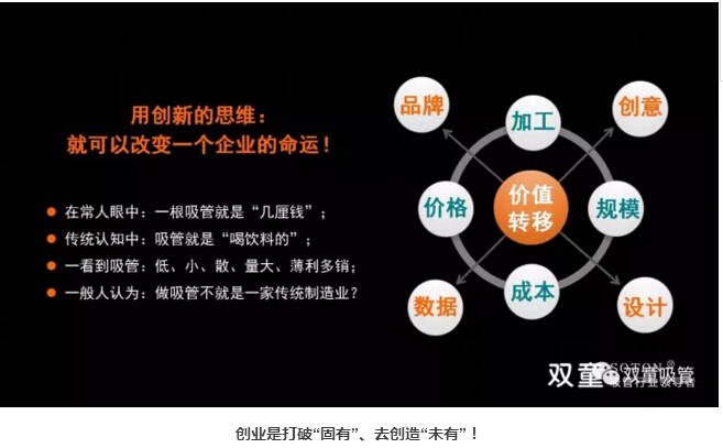 在傳統的認知當中,類(lèi)似于塑料吸管這樣的產(chǎn)品門(mén)檻低,不起眼,是典型的“低、小、散、弱”傳統邊緣產(chǎn)品,很難做品牌。但“雙童”用創(chuàng )新的思維不斷努力,硬是把一個(gè)看似不可能的產(chǎn)品創(chuàng )造出大品牌,打破了吸管這類(lèi)產(chǎn)品不能做品牌的傳統偏見(jiàn)!