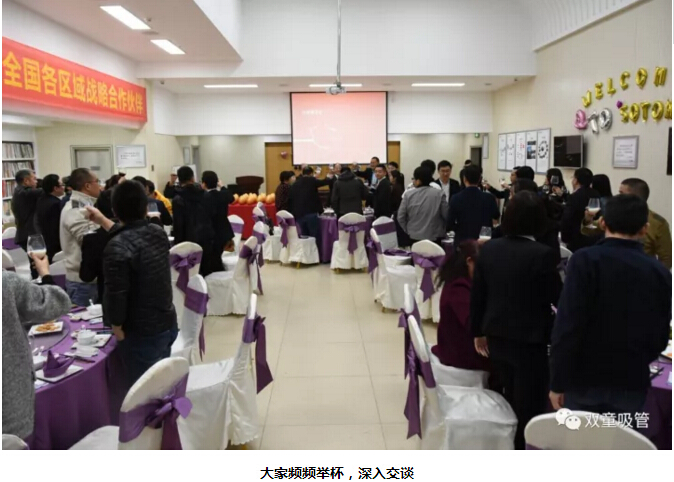 在交流過(guò)程中,客戶(hù)們提出了如何提升發(fā)貨速度、如何融合線(xiàn)上發(fā)展、如何推廣“雙童”品牌等問(wèn)題,并引發(fā)了一輪又一輪的激烈探討。他們表示,在互聯(lián)網(wǎng)的沖擊浪潮下,要加快吸管行業(yè)的產(chǎn)品升級,將線(xiàn)上線(xiàn)下進(jìn)行融合,促進(jìn)經(jīng)銷(xiāo)商向服務(wù)商的轉型,把“雙童”品牌打響,將“雙童吸管”做到家喻戶(hù)曉!