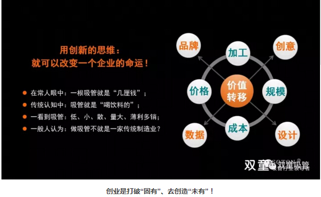 樓仲平也鼓勵創(chuàng )業(yè)者們積極參與到創(chuàng )新創(chuàng )業(yè)工作當中,創(chuàng )新無(wú)限,一根吸管能可以,還有什么不可以?“雙童”就是從一家傳統制造型企業(yè),逐漸轉型成一家互聯(lián)網(wǎng)創(chuàng )新企業(yè),改變大家對吸管行業(yè) ‘低、小、散、弱’的傳統認知,打破了世人所偏見(jiàn)的“不可能”!