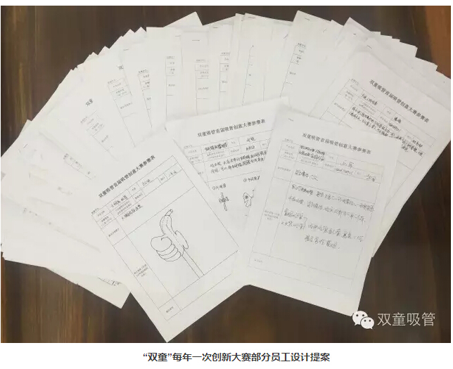 在創(chuàng )新之路初期,由于當時(shí)條件所限,“雙童”不僅沒(méi)有實(shí)驗室,更沒(méi)有專(zhuān)業(yè)研發(fā)團隊。為了邁出企業(yè)創(chuàng )新第一步,“雙童”樓仲平大門(mén)不出二門(mén)不邁,連續三個(gè)月未曾踏出公司一步,通過(guò)深刻的思考,他從零開(kāi)始撰寫(xiě)“吸管除了喝飲料還能干什么”,從而開(kāi)發(fā)出了風(fēng)車(chē)吸管、哈哈吸管、可降解吸管、吸管自動(dòng)盒等幾十個(gè)產(chǎn)品,并申請了發(fā)明專(zhuān)利和實(shí)用新型專(zhuān)利。