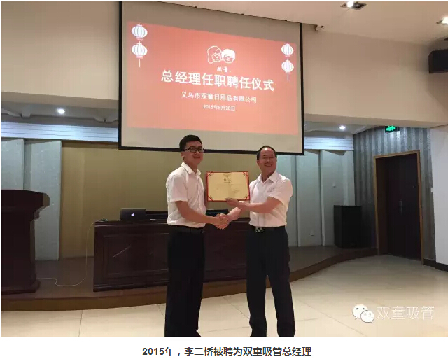 2015年5月,在義烏市雙童日用品有限公司首個(gè)總經(jīng)理任命儀式上,處于知天命之年的董事長(cháng)樓仲平將聘書(shū)遞給30歲的職業(yè)經(jīng)理人李二橋。作為老板,擁有一兒一女的樓仲平宣布,“李二橋不僅是CEO,將來(lái)干得好,也可能是公司的接班人”。