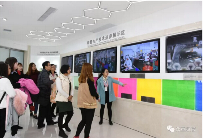 為了讓大家更好的參觀(guān)了解中國吸管博物館,我們分別安排了總經(jīng)理李二橋、總經(jīng)理助理孟竹燕、吸管妞及吸管君共同接待。往往是這批參觀(guān)隊伍還沒(méi)走,下一批參觀(guān)團隊就到“雙童”廠(chǎng)區,這可忙壞了接待人員!接下來(lái),吸管妞就帶大家來(lái)看看參觀(guān)現場(chǎng)吧!