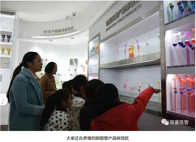 最后,大家來(lái)到了“雙童”產(chǎn)品的展示區,風(fēng)車(chē)吸管、哈哈吸管、愛(ài)心吸管、party吸管、藝術(shù)吸管……“雙童”生產(chǎn)的上百個(gè)品類(lèi)的吸管也讓參觀(guān)團們震撼不已!