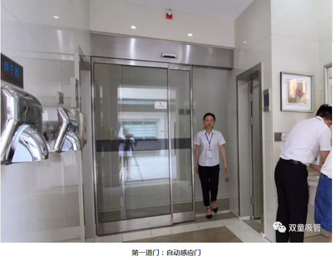 1.首先,員工們要經(jīng)過(guò)第一道自動(dòng)感應門(mén)才能進(jìn)入生產(chǎn)區域。