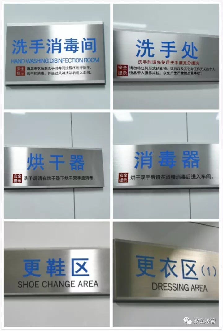 除此之外,功能區內還配置了高端的烘干器、消毒器、感應水龍頭以及酒精消毒器等硬件,并配置了許多精心定制的標示牌,提示著(zhù)員工規范使用!這樣的配備也為員工的衛生要求做了硬件的保障,確保員工工作環(huán)境的極致衛生!