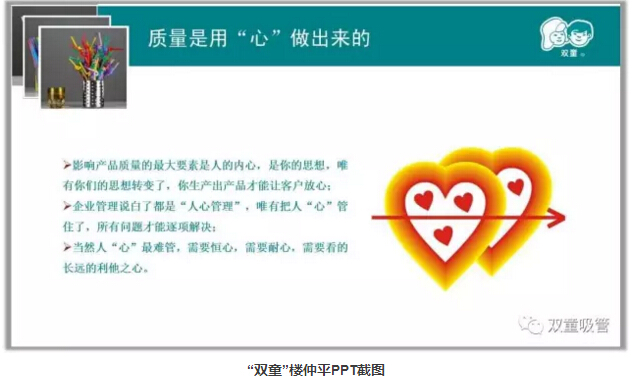 有了如此整潔干凈的生產(chǎn)環(huán)境,“雙童”生產(chǎn)的吸管自然支支見(jiàn)品!如今,“雙童”生產(chǎn)的吸管不僅有著(zhù)高品質(zhì),還突破了常人對“吸管”產(chǎn)品的認知!就拿愛(ài)心吸管來(lái)說(shuō),由14個(gè)配件組成,安裝有液體止回流裝置,也避免了兩個(gè)人之間的細菌交叉感染。目前為止,“雙童”擁有了100多項專(zhuān)利,掌握了全球吸管行業(yè)近2/3的專(zhuān)利,并且主導著(zhù)全球吸管行業(yè)的行業(yè)標準制定。