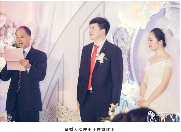 婚禮的現場(chǎng)來(lái)了一位特殊的客人,他是這對新人的證婚人,他是雙童吸管當家人樓仲平。