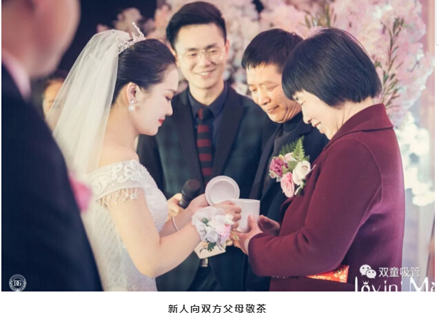 最后,新郎新娘的雙方父母上場(chǎng)共同見(jiàn)證一對新人的幸福。新郎和新娘向父母敬茶改口,全家人一起向全場(chǎng)來(lái)賓敬酒,婚禮禮成,一對新人正式進(jìn)入了婚姻的殿堂!