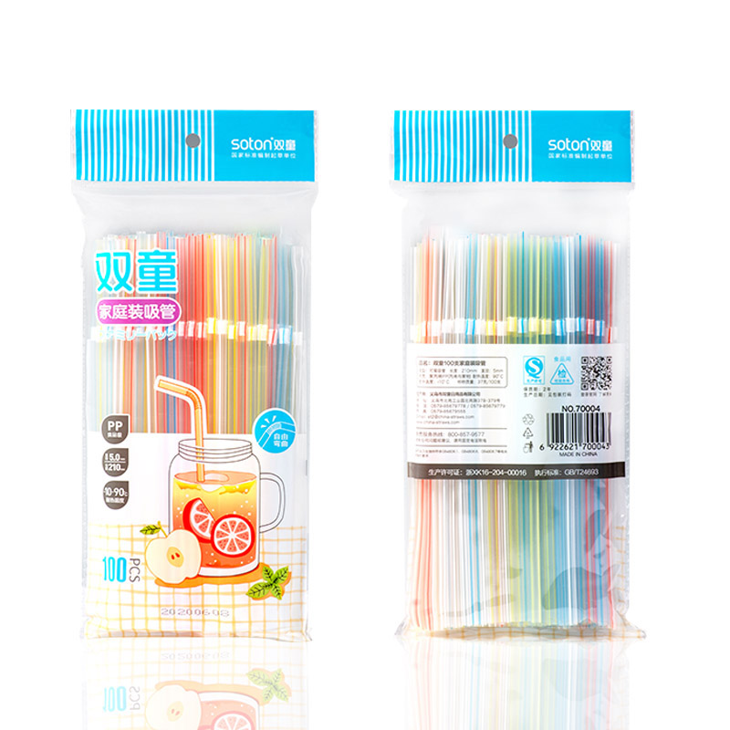 70004雙童100支透明彩條家庭裝彎吸管