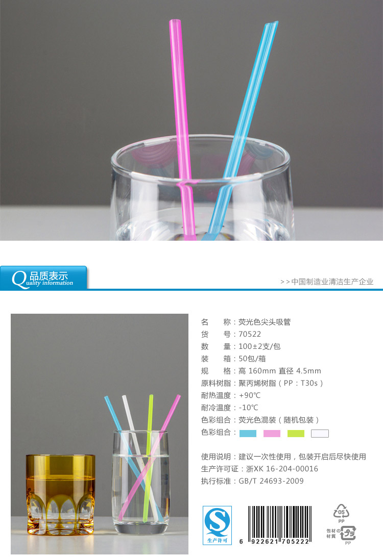 70522雙童100支四色分裝牛奶尖吸管
