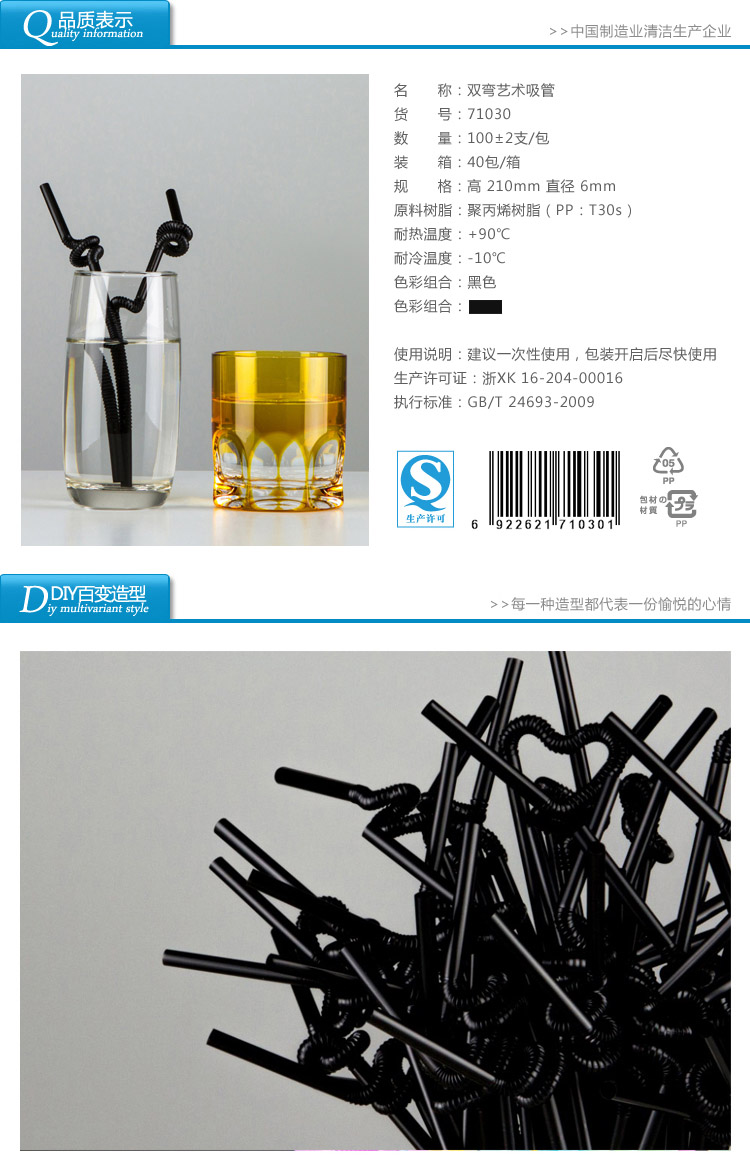 71030雙童100支黑色雙彎藝術(shù)吸管